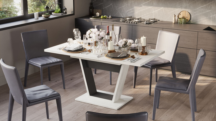 Стол обеденный «Гавана» Тип 1 Дуб Крафт белый, Серый графит