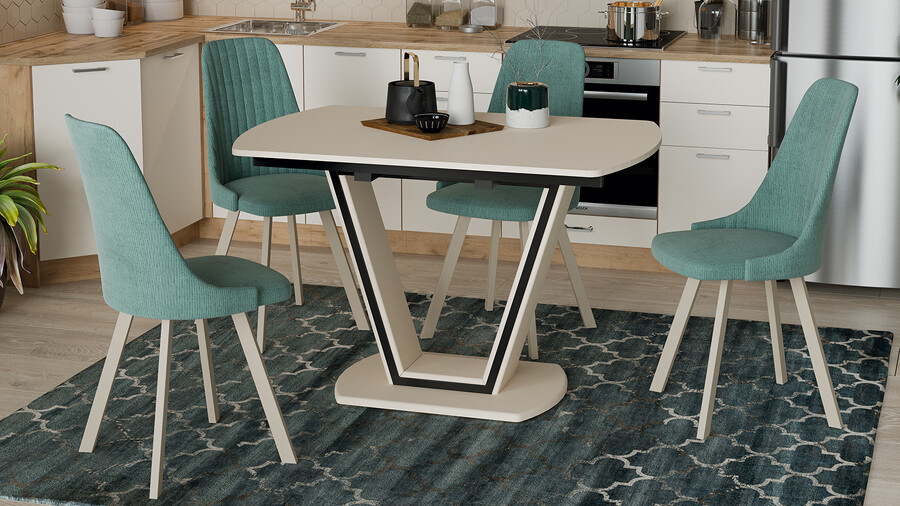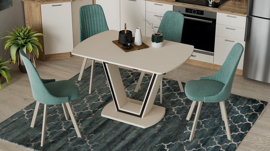 Стол обеденный «Дели» Тип 2 Бежевый софт, Стекло матовое бежевое