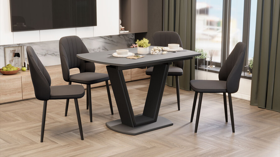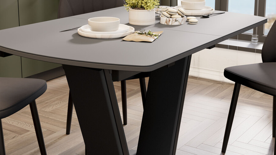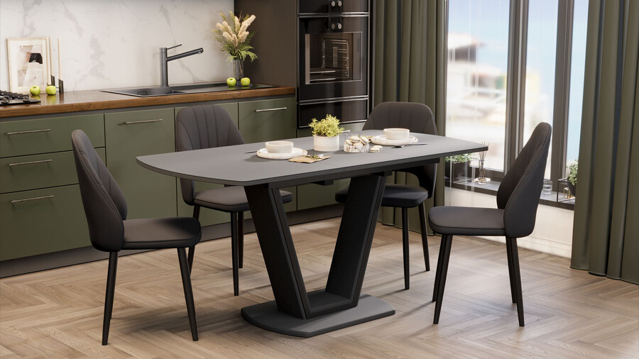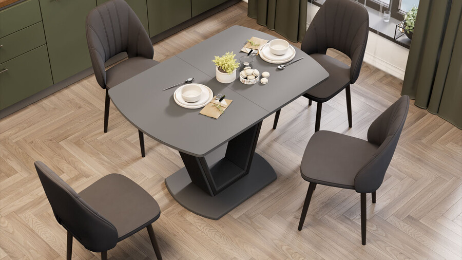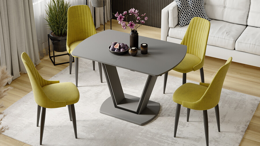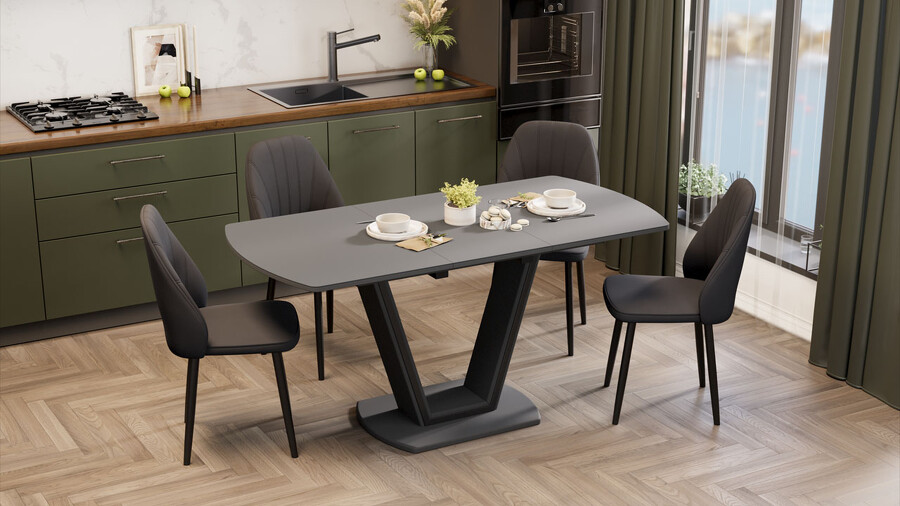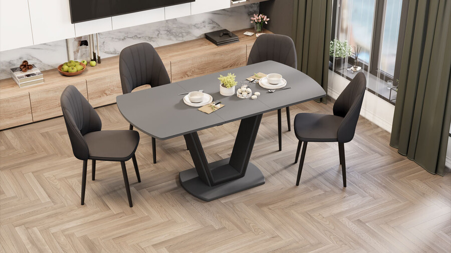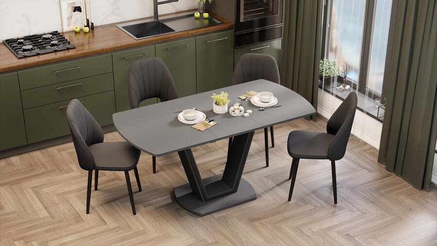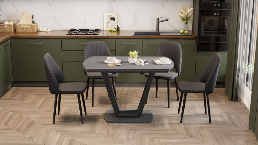 Стол обеденный «Дели» Тип 2 Серый софт, Стекло матовое серое