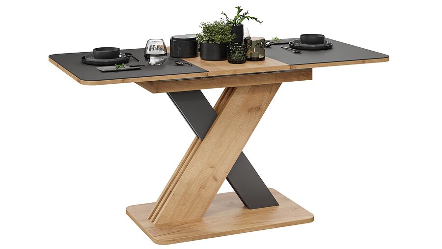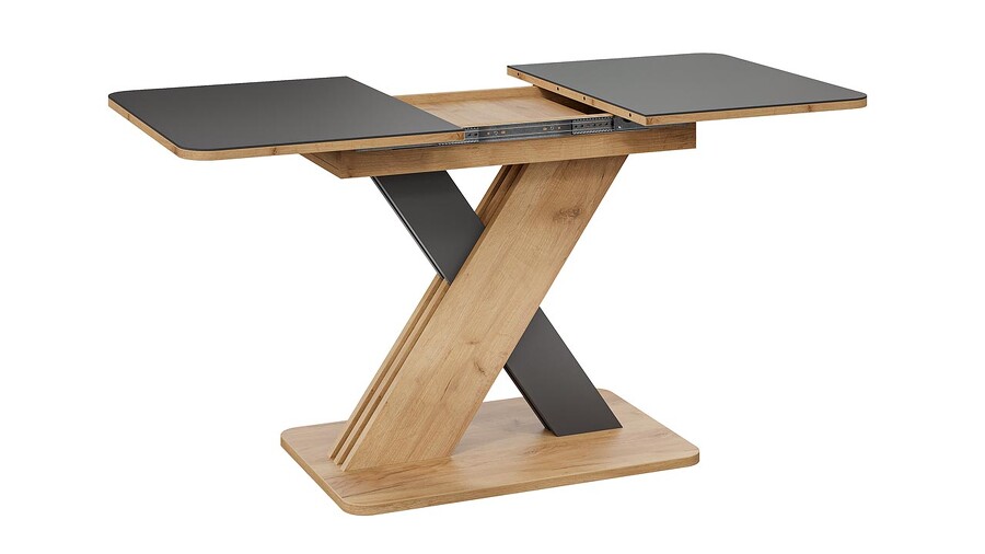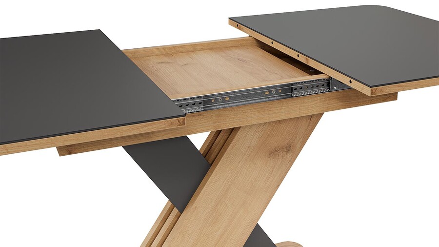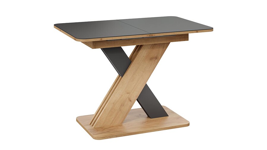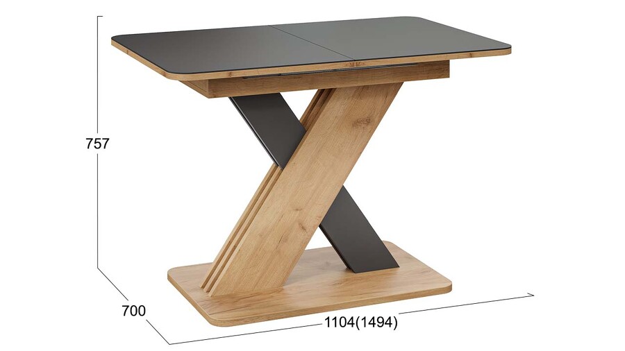 Стол обеденный раздвижной «Люксембург» Тип 1 Дуб Крафт золотой, Серый, Стекло серое матовое