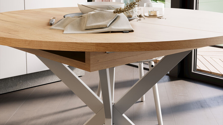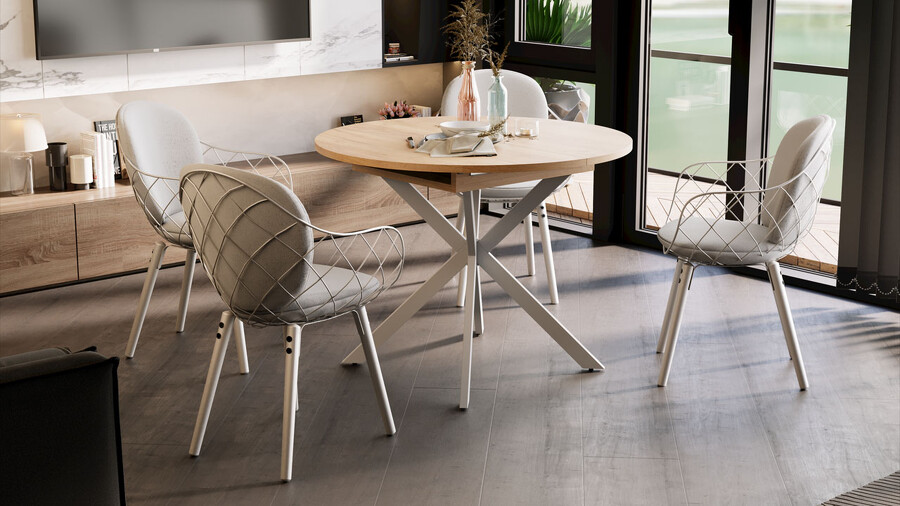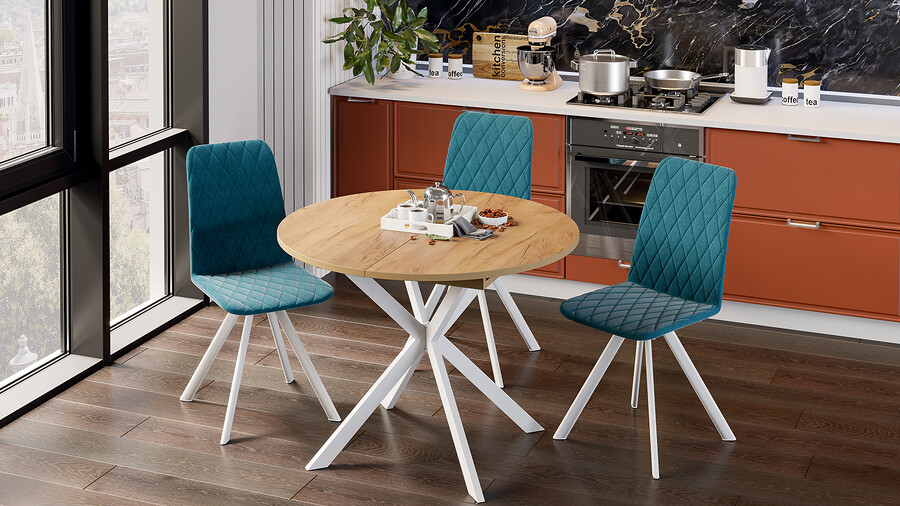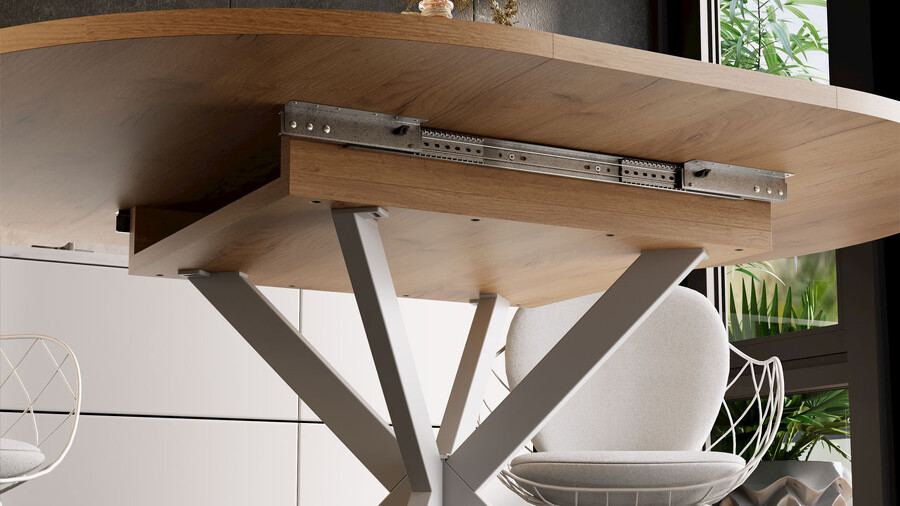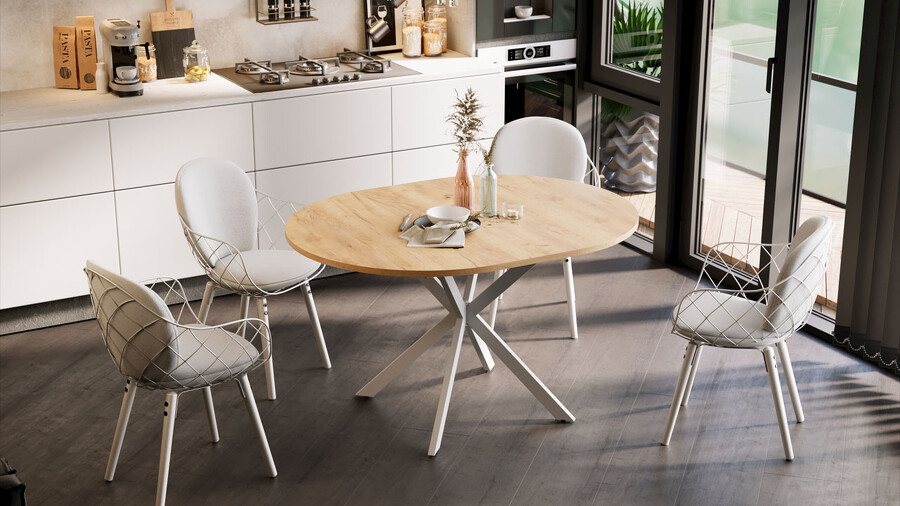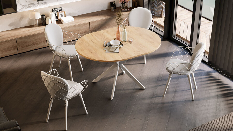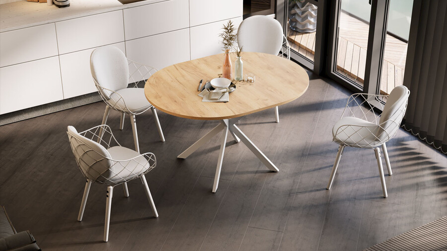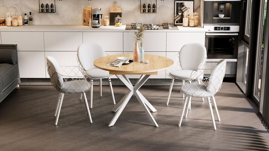 Стол обеденный раздвижной «Мэдисон» Тип 1 Белый муар, Дуб Крафт золотой