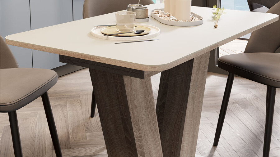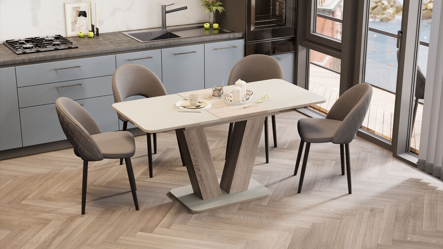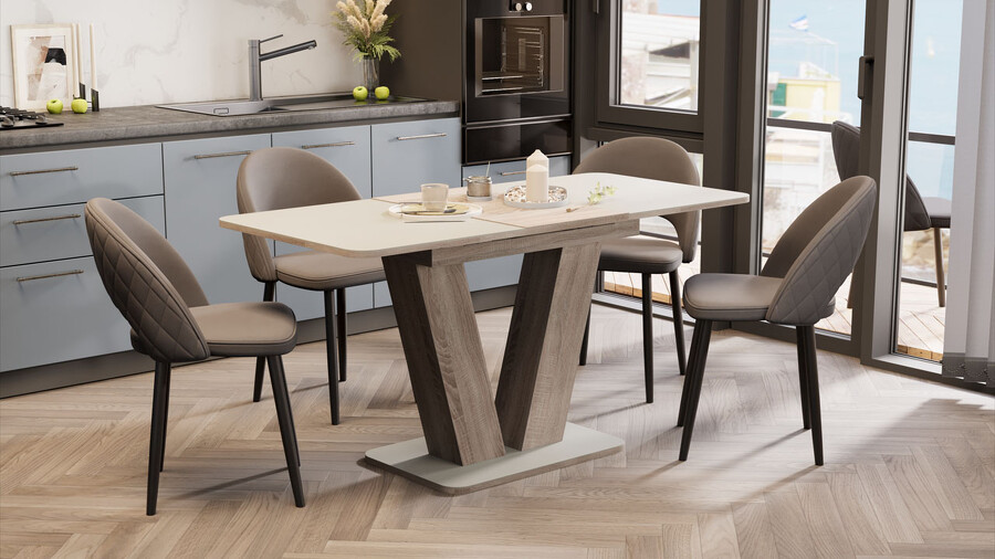 Стол раздвижной «Чинзано» Тип 1 Дуб Сонома трюфель, Стекло бежевое матовое