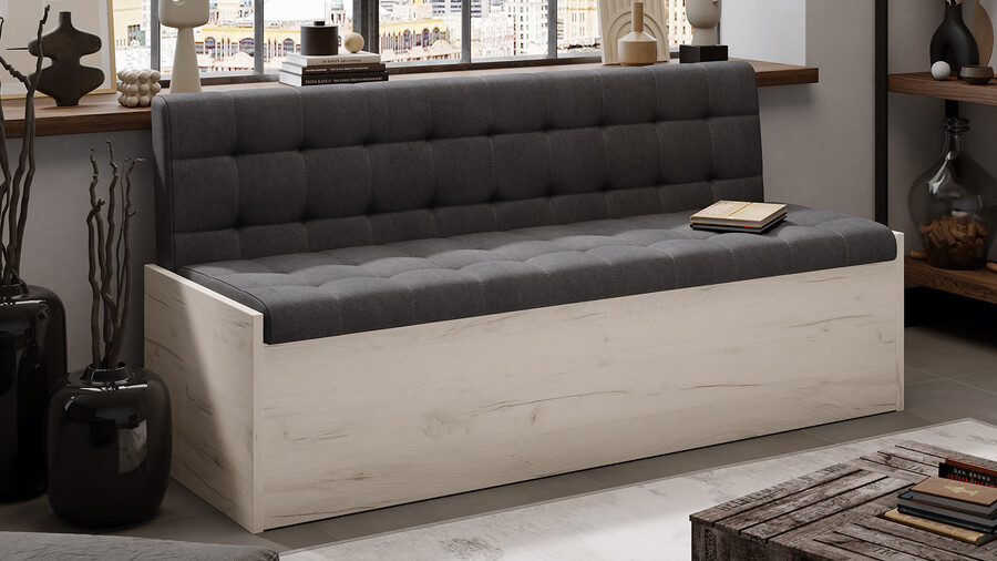 Скамья прямая «Форест» Дуб Крафт белый, Велюр Серый
