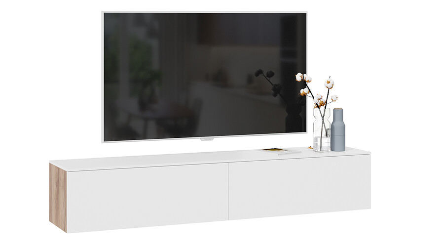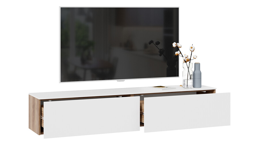 Тумба для теле- и радиоаппаратуры «Порто» - ТД-393.03.11 Яблоня Беллуно, Белый софт