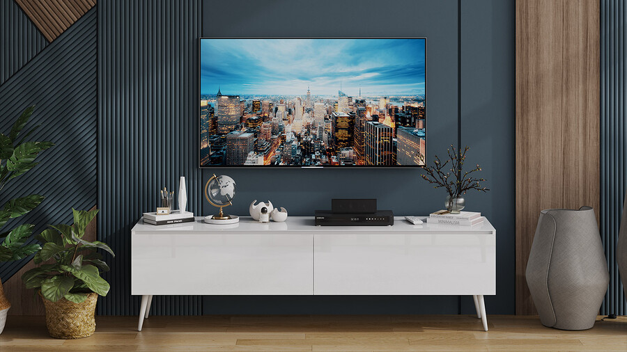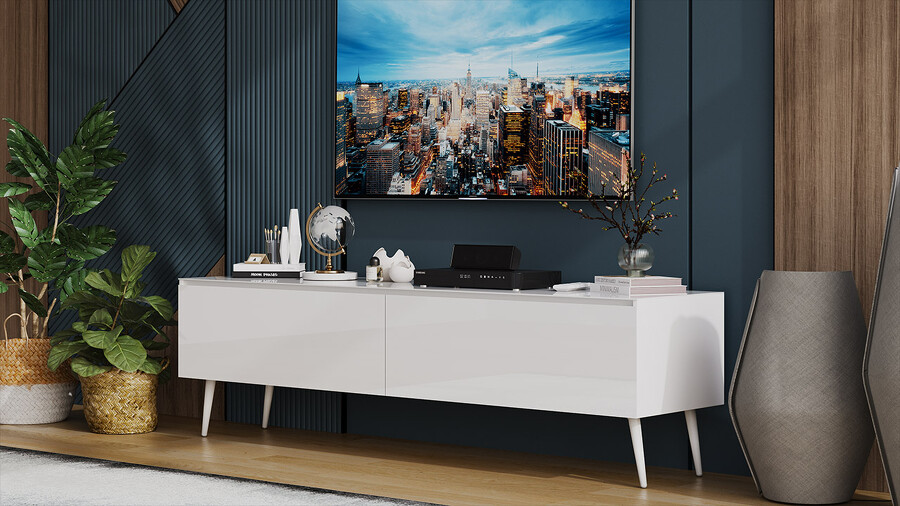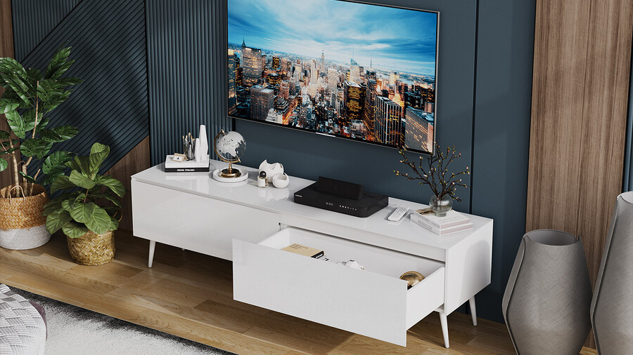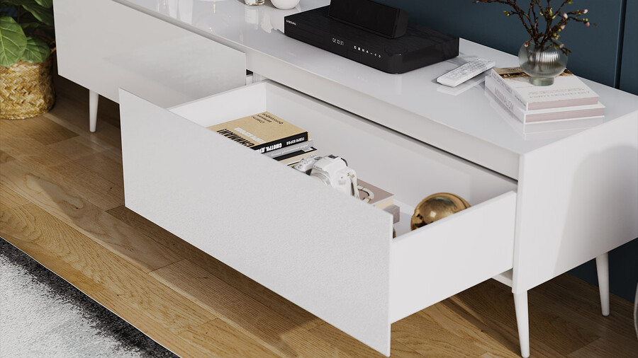 Тумба для теле- и радиоаппаратуры «Глосс» с опорами - СМ-319.03.011 Белый глянец, Стекло Белый глянец, Белый