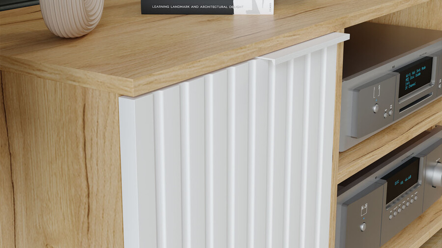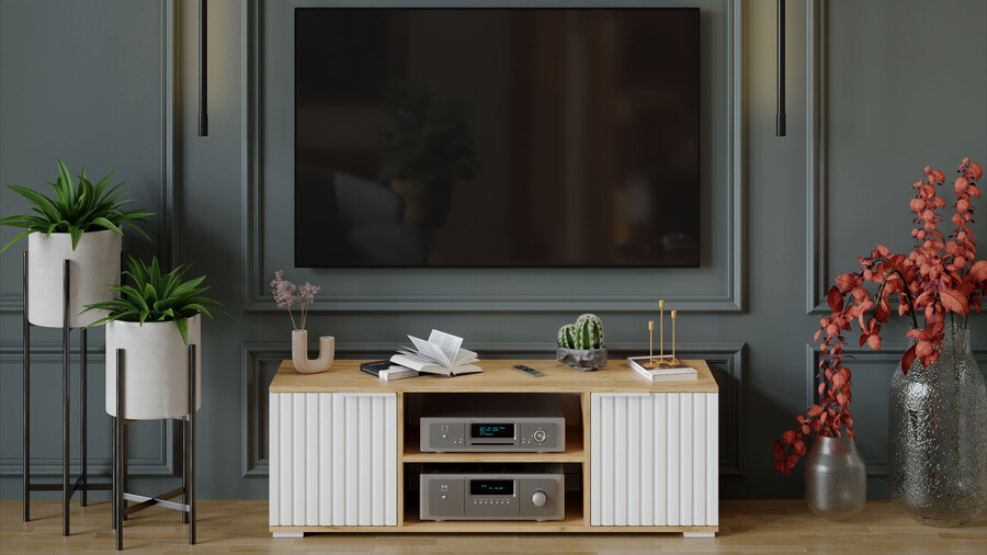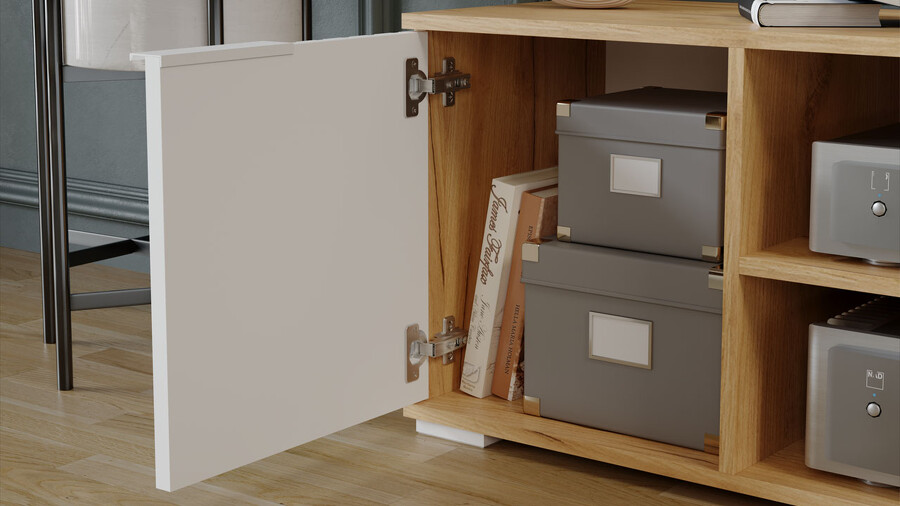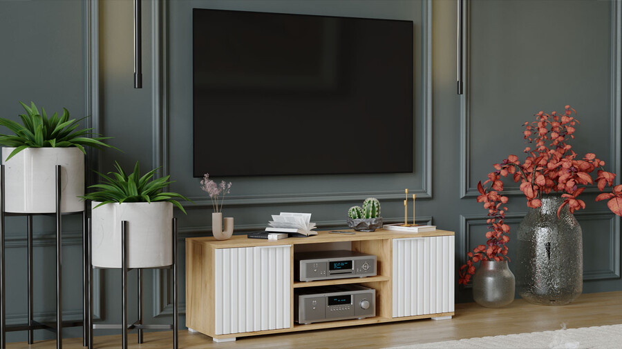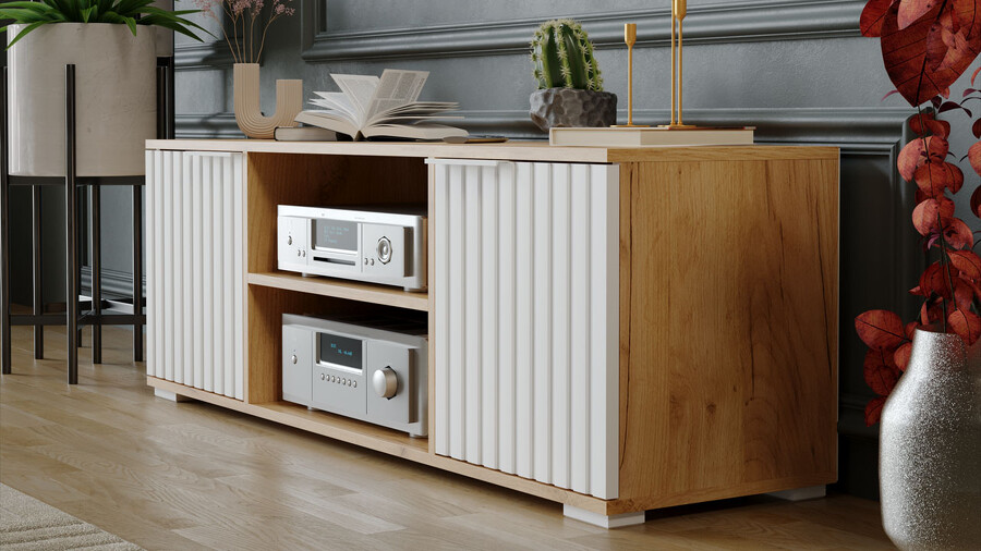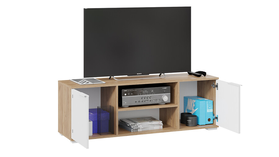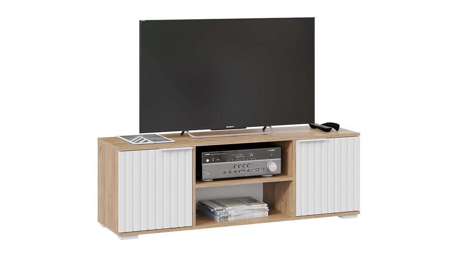 Тумба под ТВ «Хилтон» Исп.2 - 413.12 Дуб Крафт золотой, Белый матовый