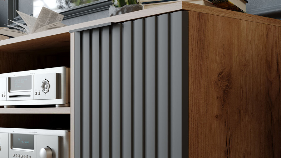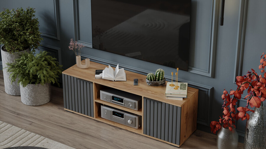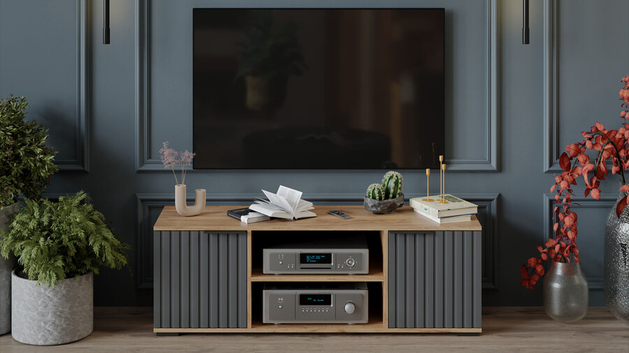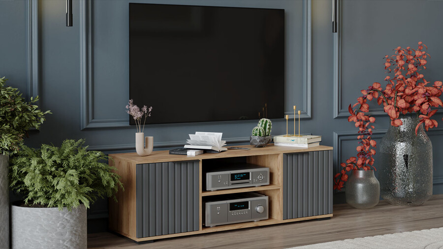 Тумба под ТВ «Хилтон» Исп.2 - 413.12 Дуб Крафт золотой, Графит матовый