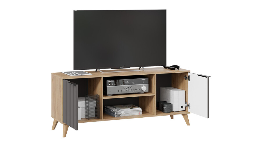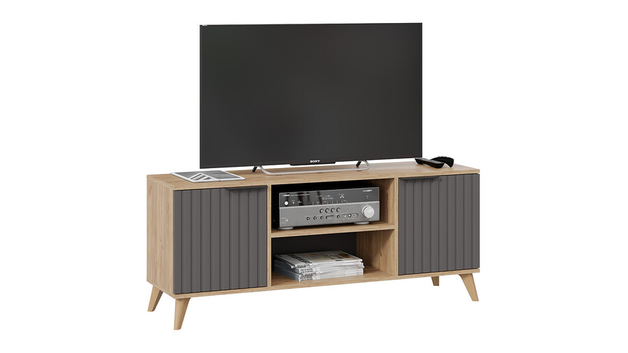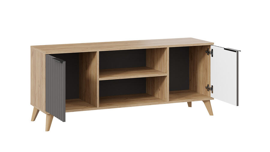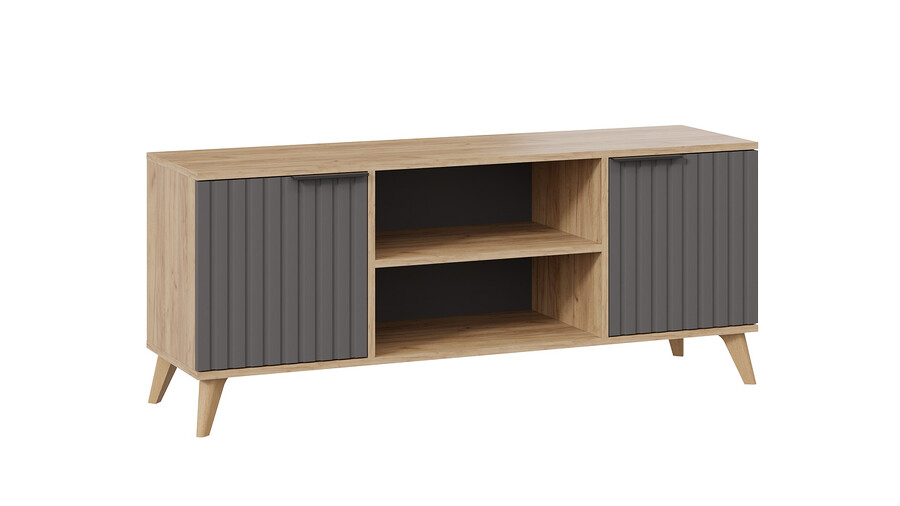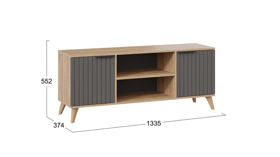 Тумба под ТВ «Хилтон» Исп.2 с опорами Бук матовый, Дуб Крафт золотой, Графит матовый