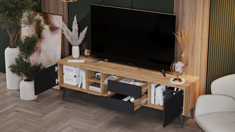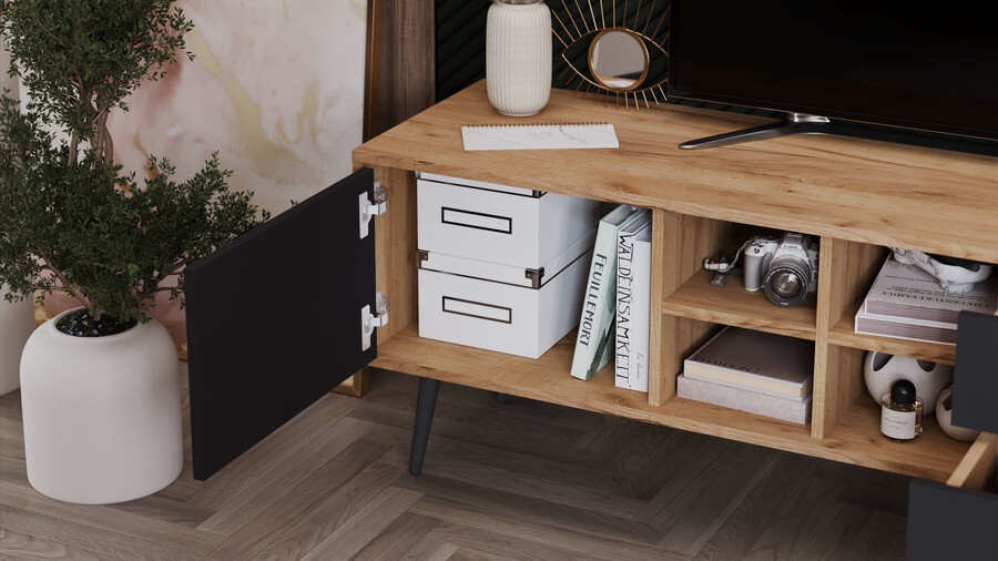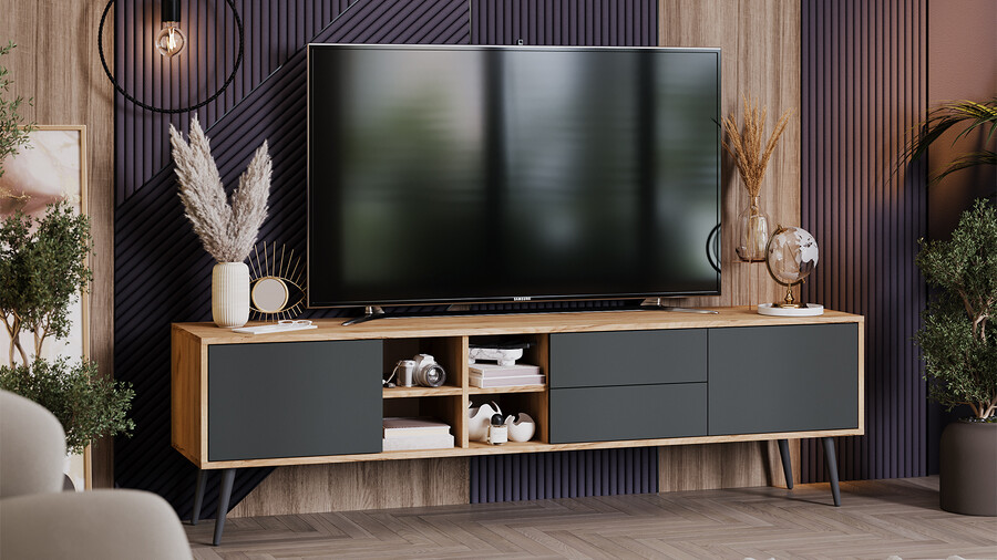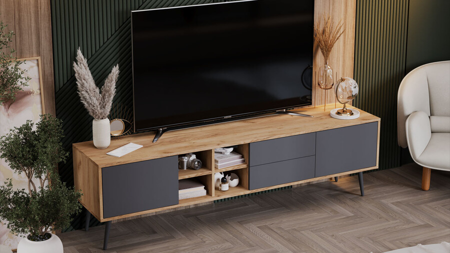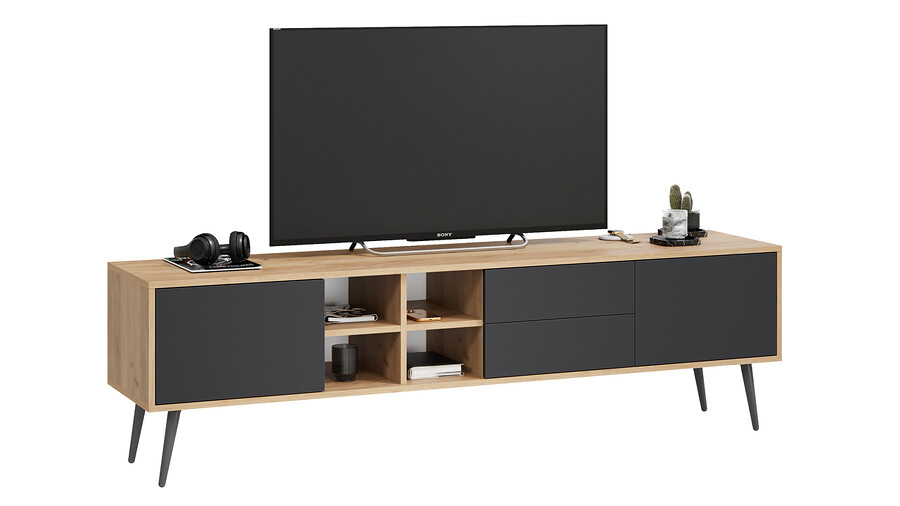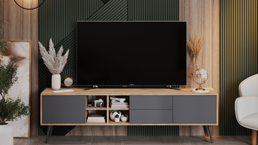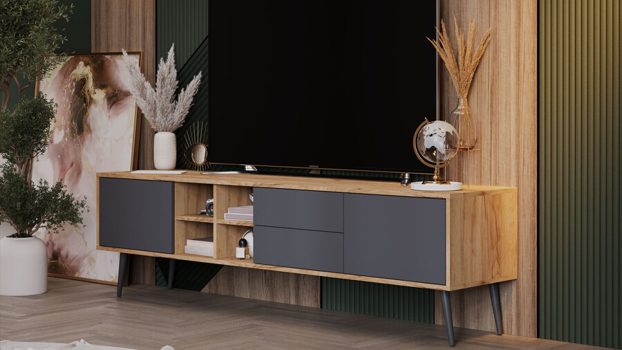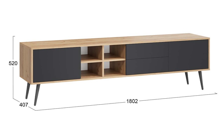 Тумба ТВ тип 5 с опорами Дуб Крафт золотой, Антрацит, Серый