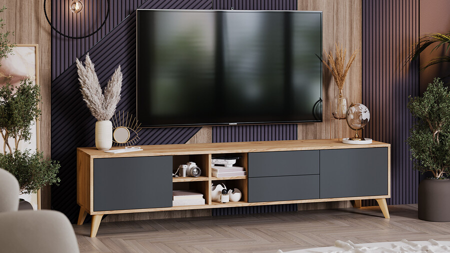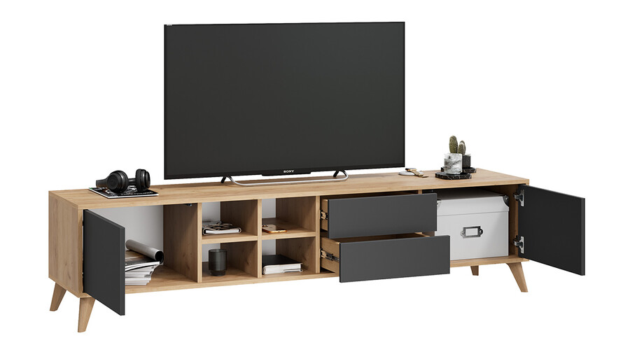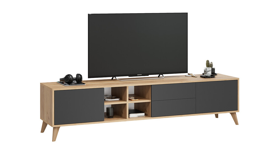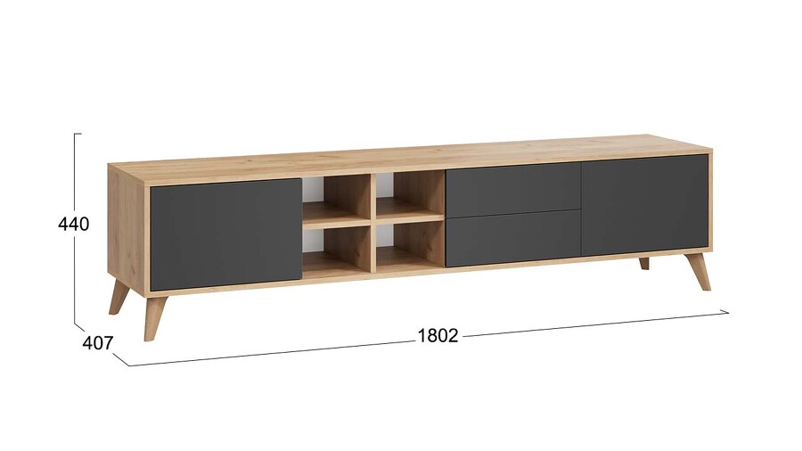 Тумба ТВ тип 5 с опорами Бук матовый, Дуб Крафт золотой, Антрацит