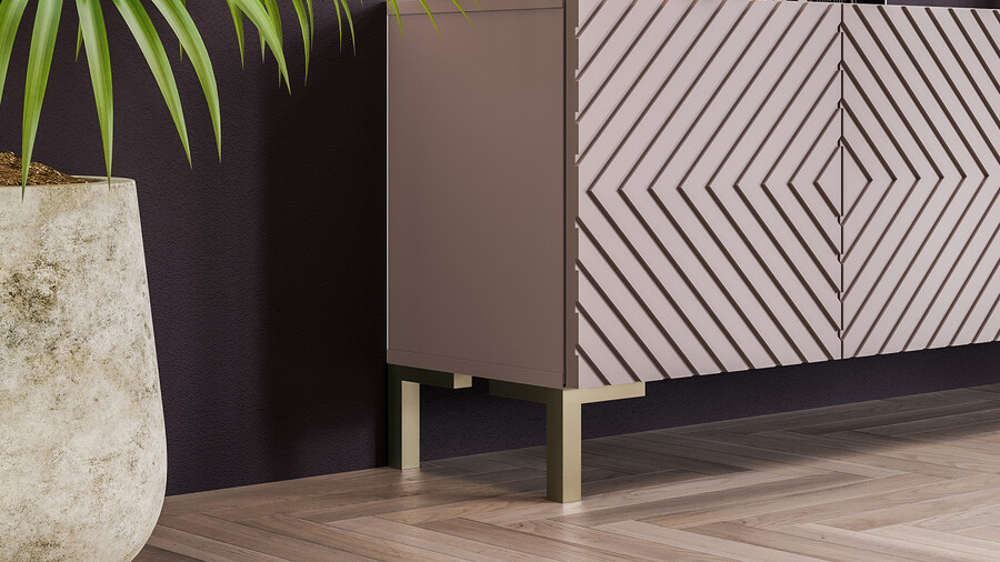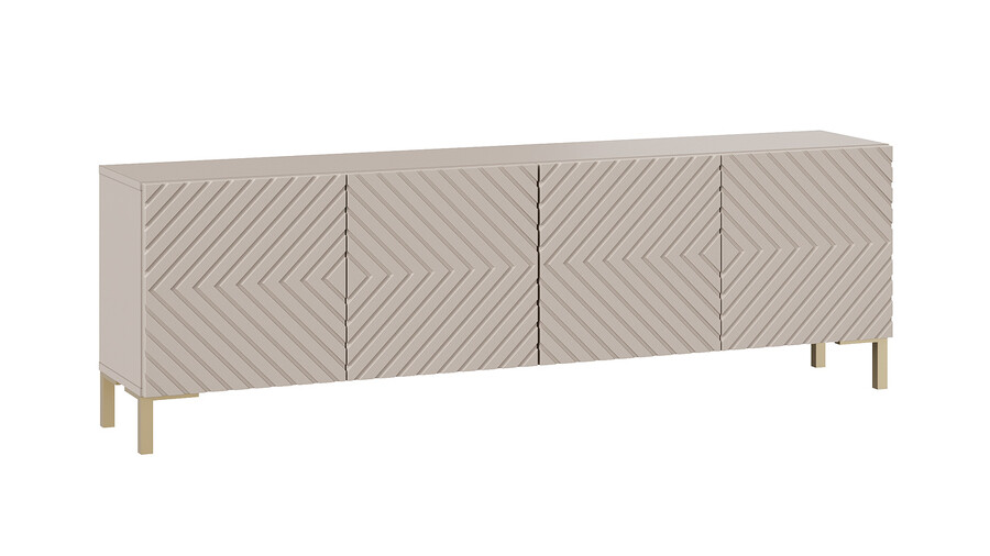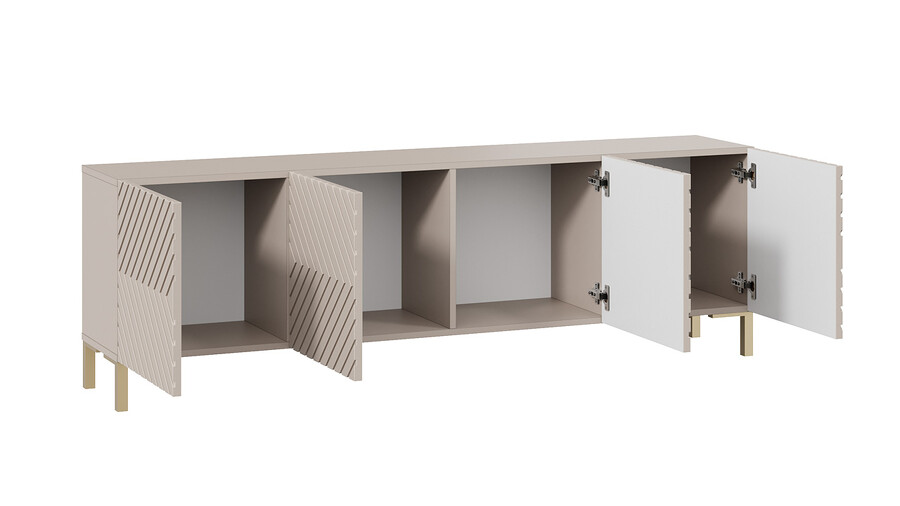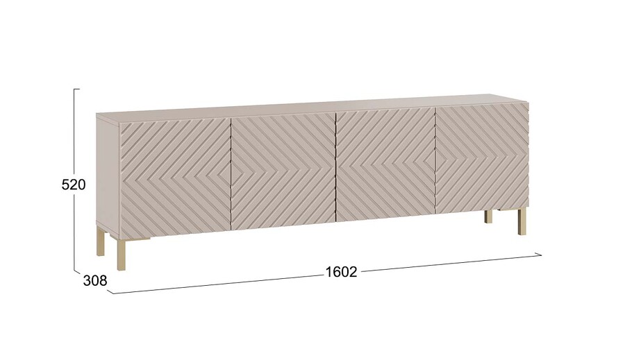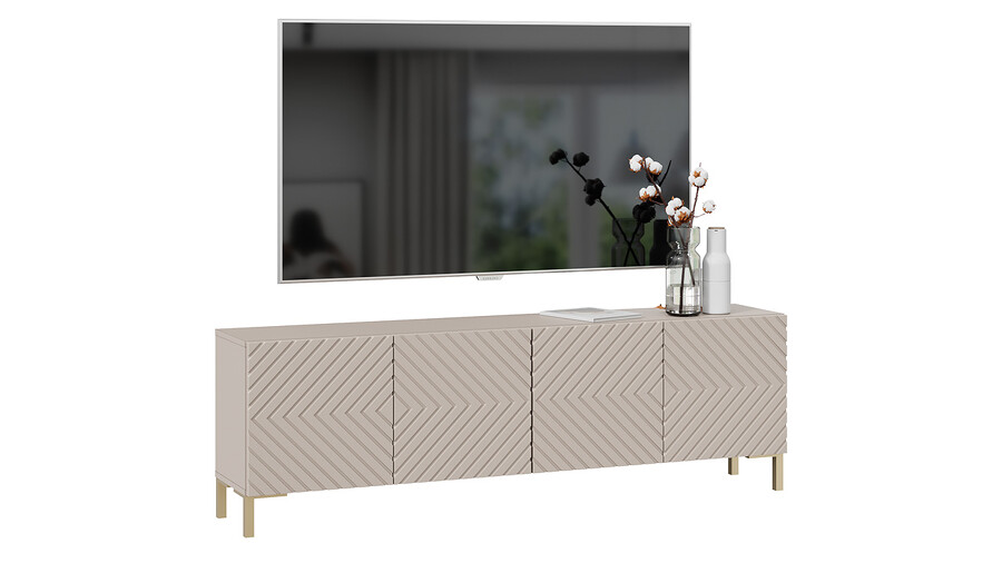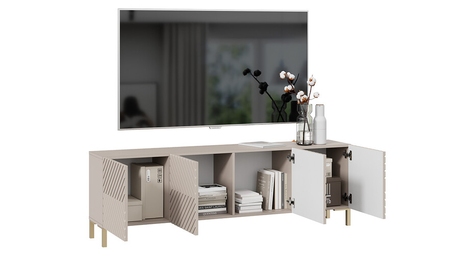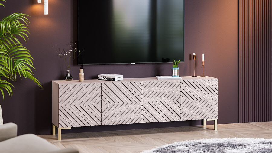 Тумба ТВ с опорами Танго Золото розовое, Глиняно серый, Холст латте