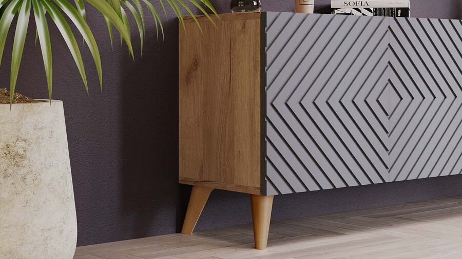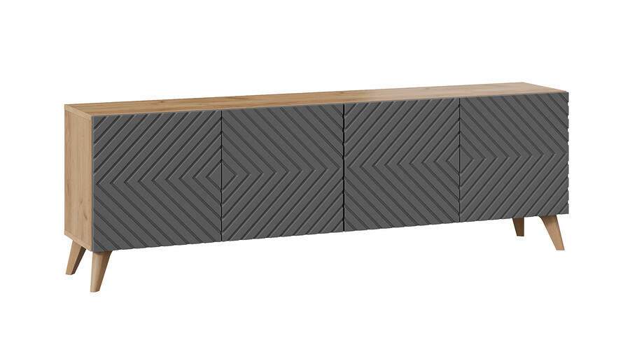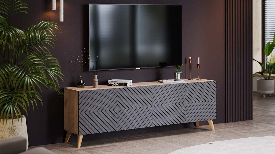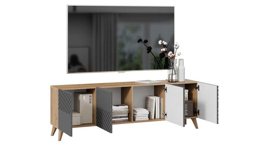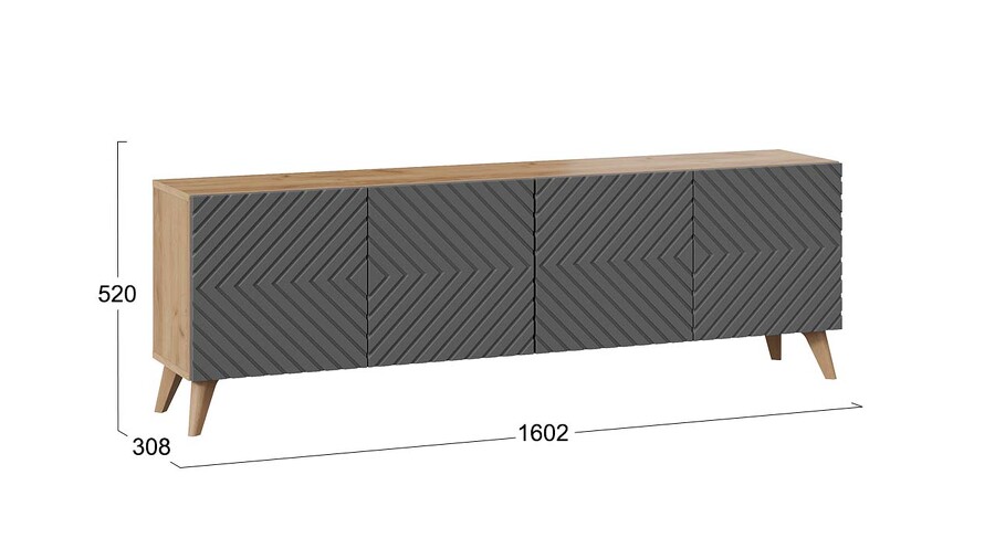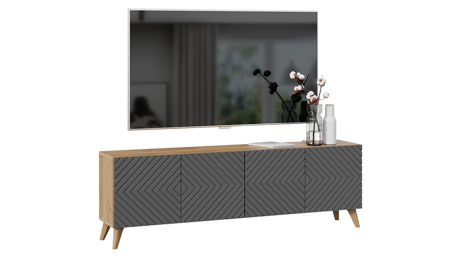 Тумба ТВ с опорами Танго Бук матовый, Дуб Крафт золотой, Холст Вулкан