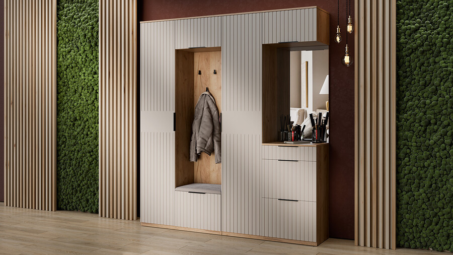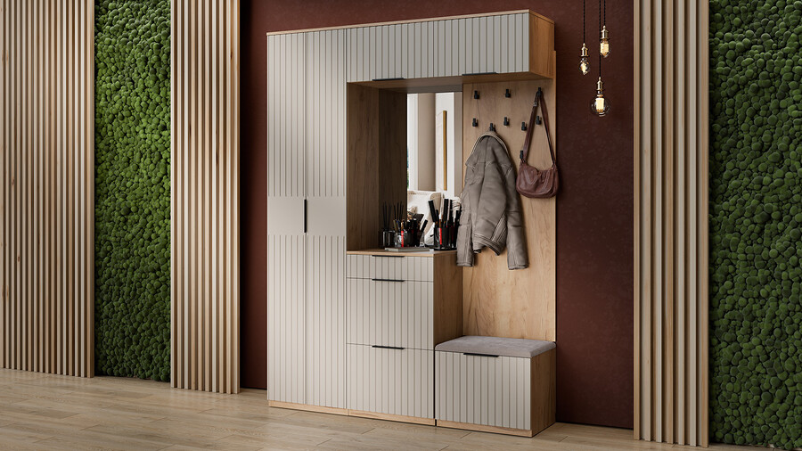 Прихожая «Хилтон» Дуб Крафт золотой, Мокко матовый