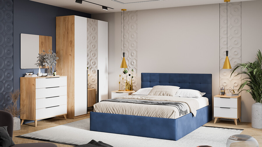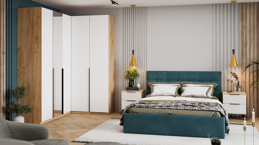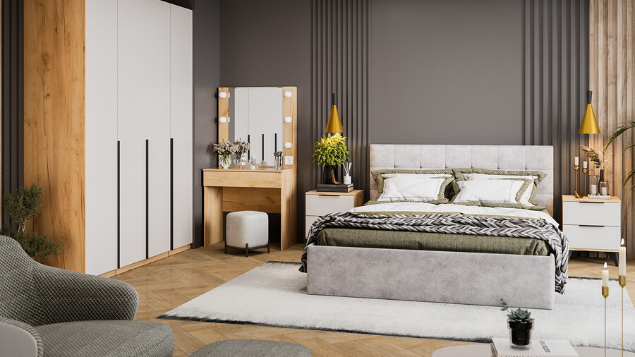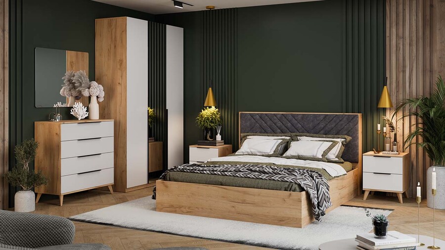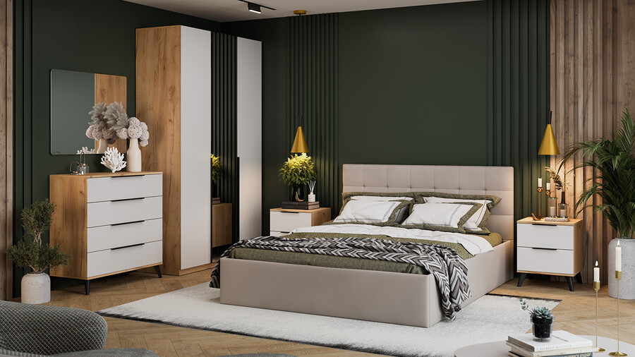 Спальня «Джоли» Дуб Крафт золотой, Белый матовый