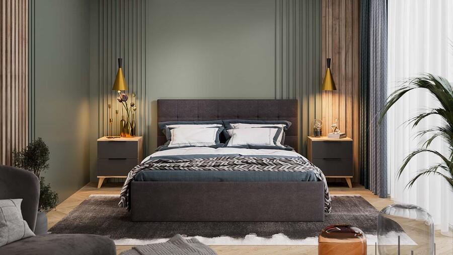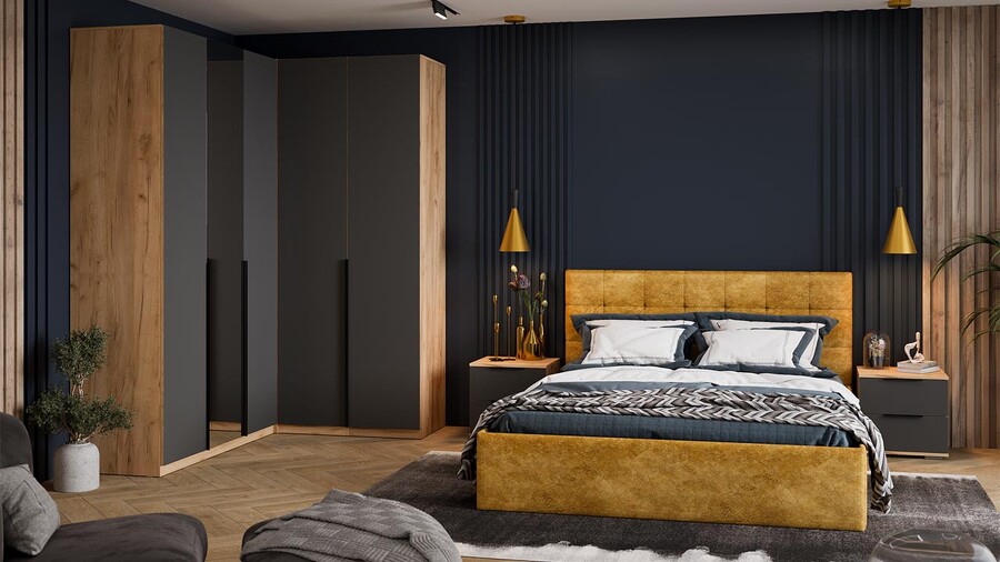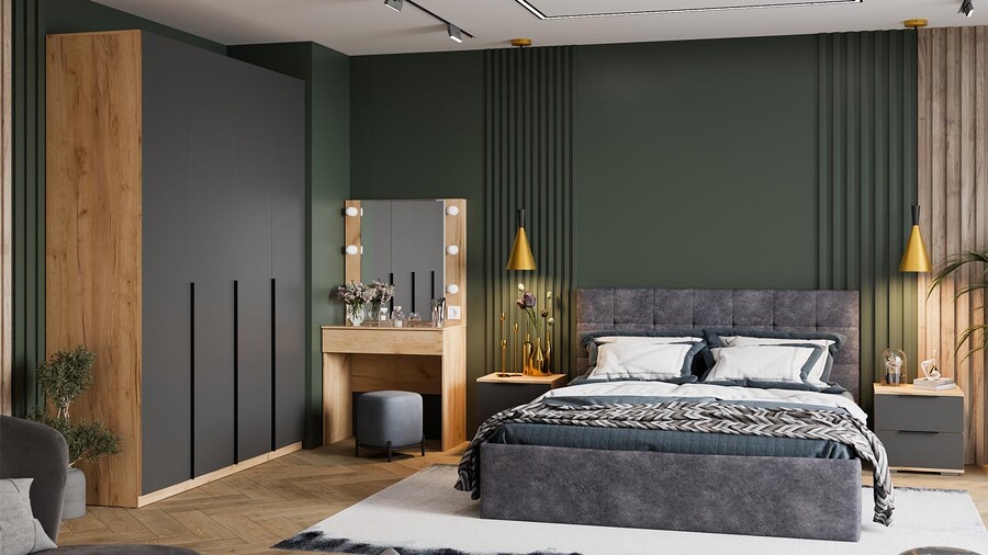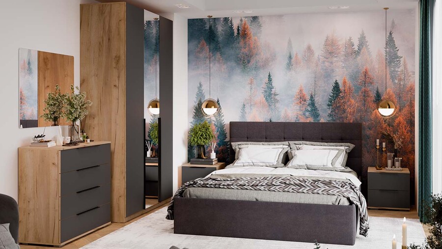 Спальня «Джоли» Дуб Крафт золотой, Графит матовый