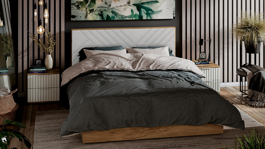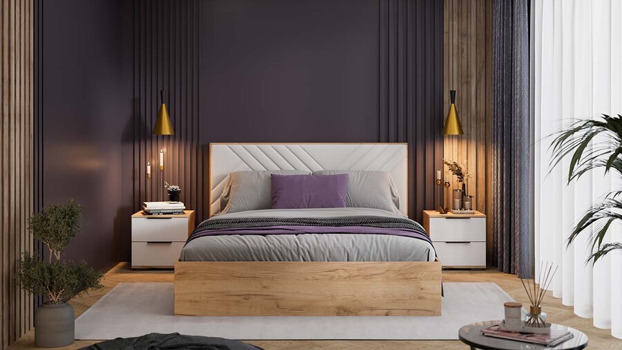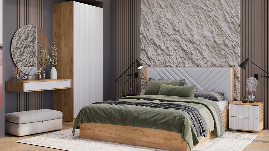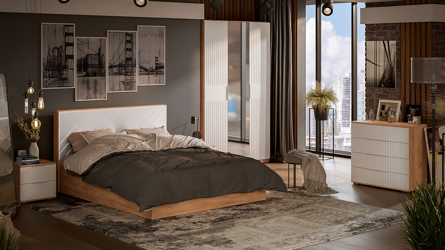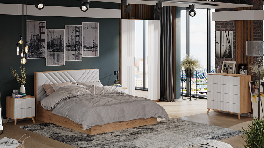 Спальня «Хилтон» Дуб Крафт золотой, Белый матовый