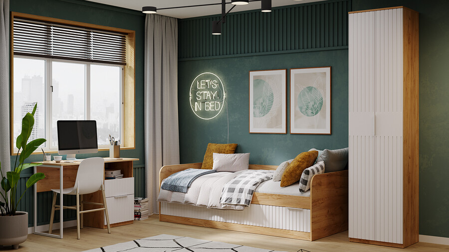 Детская «Хилтон» Дуб Крафт золотой, Белый матовый