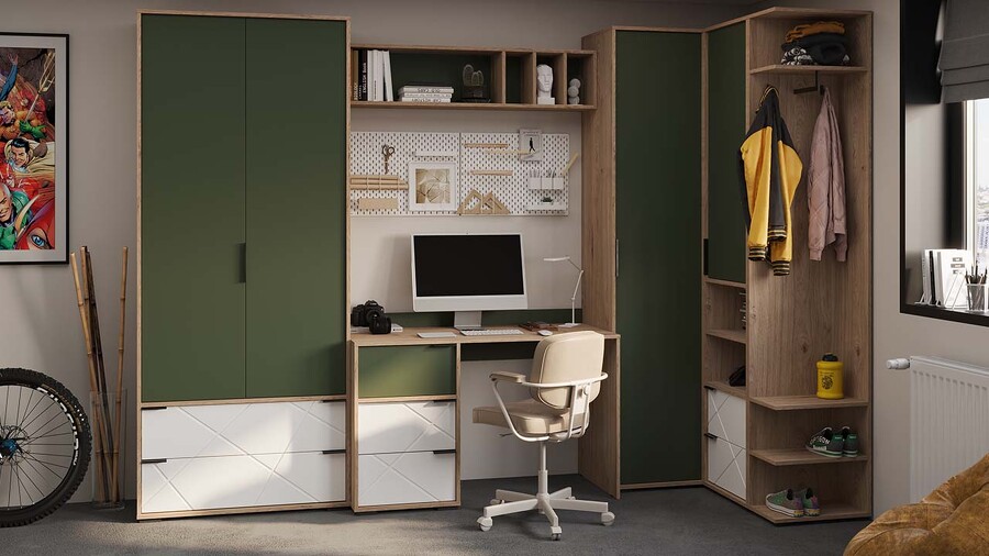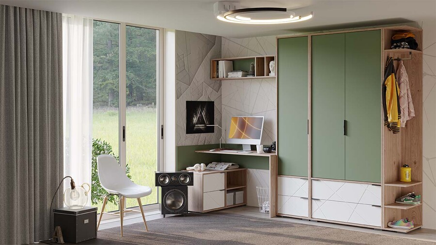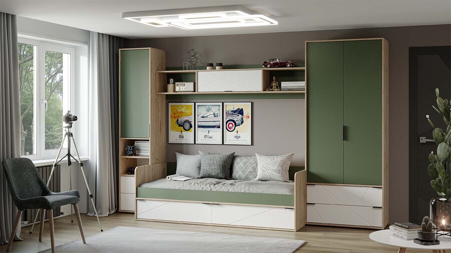 Детская «Лео» Гикори джексон/Белый матовый/Дымчатый зеленый