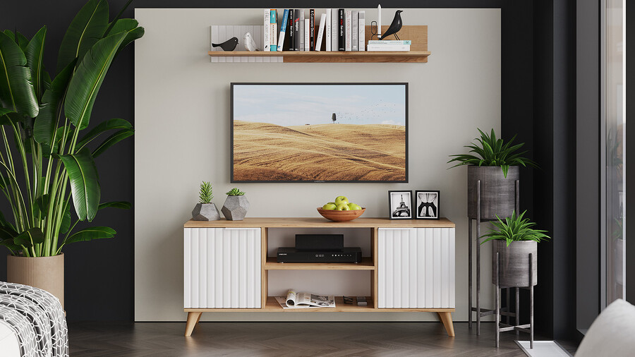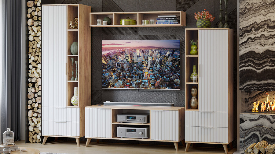 Гостиная «Хилтон» Дуб Крафт золотой, Белый матовый
