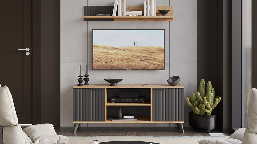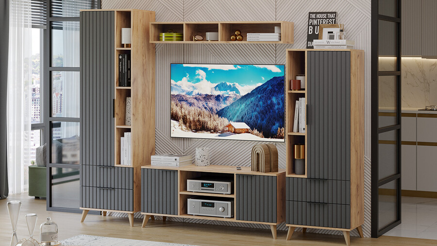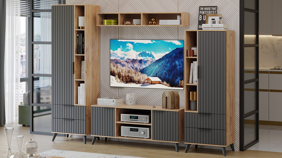 Гостиная «Хилтон» Дуб Крафт золотой, Графит матовый
