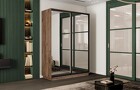 Серия шкафов-купе «Румер-2» Дуб Крафт Табачный, Зеркало, Черный профиль
