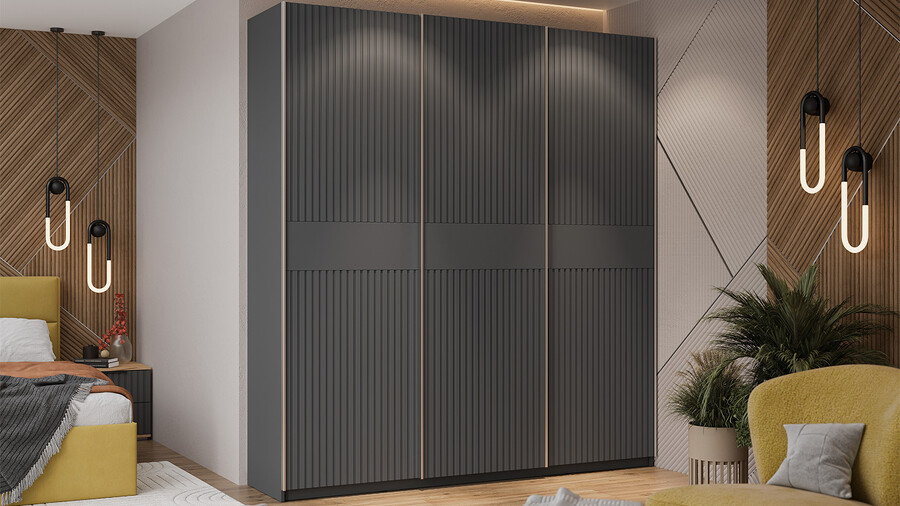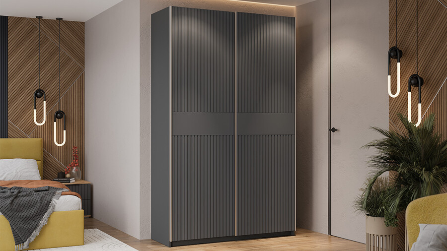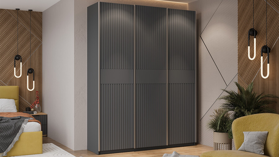 Серия шкафов-купе «Оскар Хилтон» Ручка серебро, Серый графит, Графит матовый