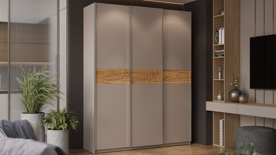 Серия шкафов-купе «Оскар Скания» Ручка серебро, Кашемир, Дуб тортугга