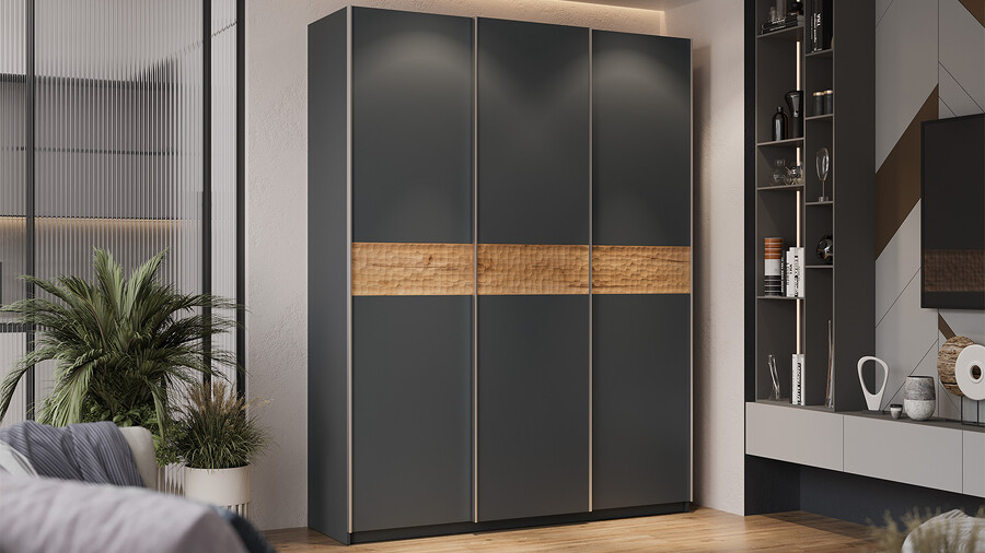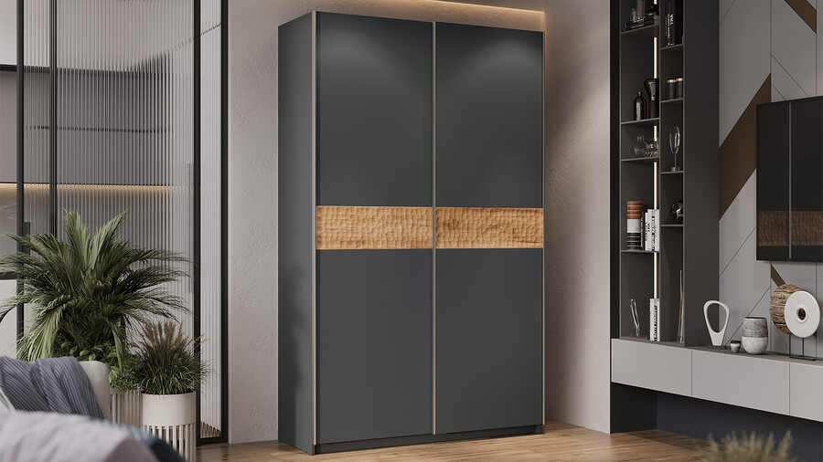 Серия шкафов-купе «Оскар Скания» Ручка серебро, Серый графит, Дуб тортугга