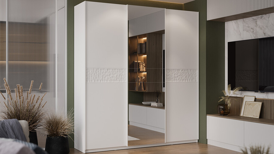 Серия шкафов-купе «Оскар Скания» Ручка белая, Белый снег, Белый матовый