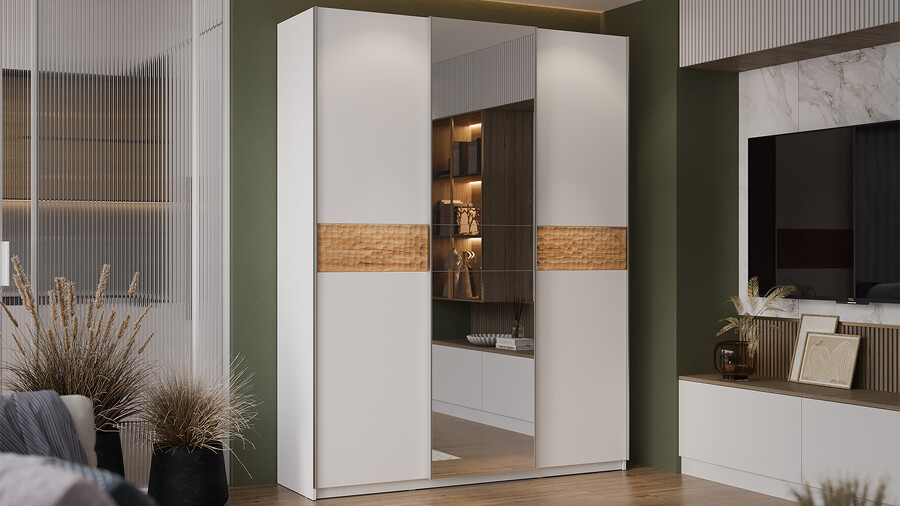 Серия шкафов-купе «Оскар Скания» Ручка серебро, Белый снег, Дуб тортугга