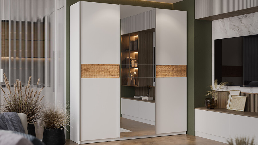 Шкаф-купе с 1 глухой и 1 зеркальной дверями «Оскар Скания»