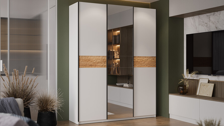 Серия шкафов-купе «Оскар Скания» Ручка черная, Белый снег, Дуб тортугга