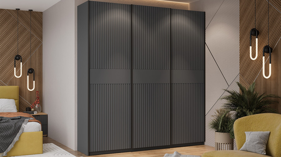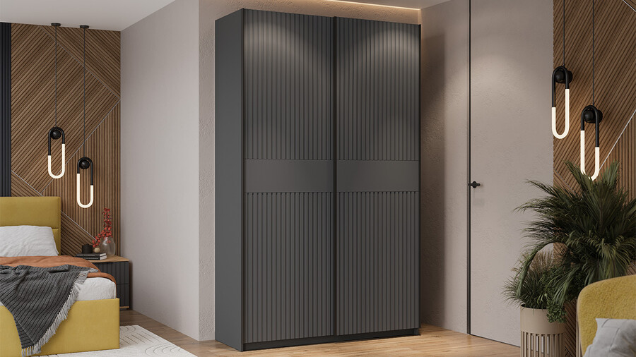 Серия шкафов-купе «Оскар Хилтон» Тип 2 Ручка черная, Серый графит, Графит матовый