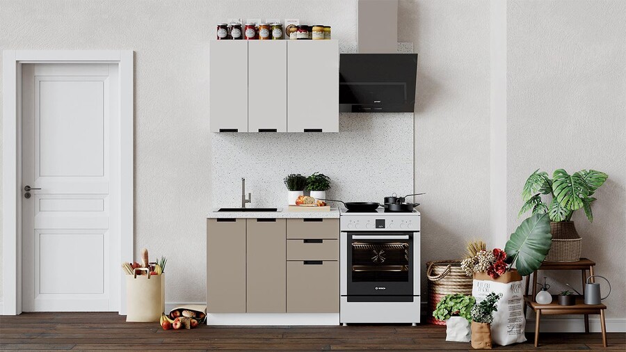 Кухонный гарнитур «Гренада» стандартный Белый, Холст латте, Холст мокко