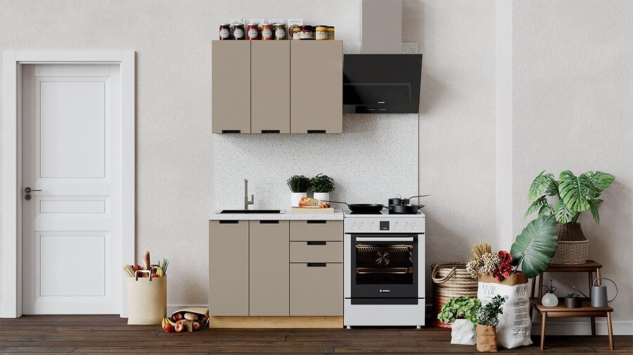 Габаритный размер готового набора модулей с учетом газовой плиты на 60 см: 160 см.
