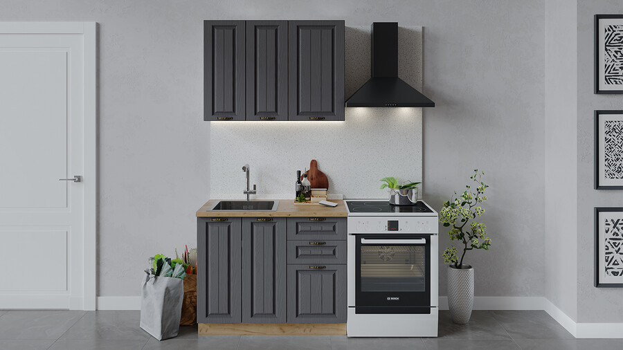 Габаритный размер готового набора модулей с учетом газовой плиты на 60 см: 160 см.