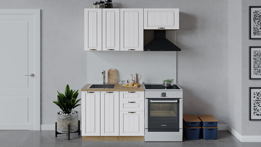 В стоимость не включено: Стеновая панель, столешница, доводчики, бытовая техника, мойка, смеситель, аксессуары
