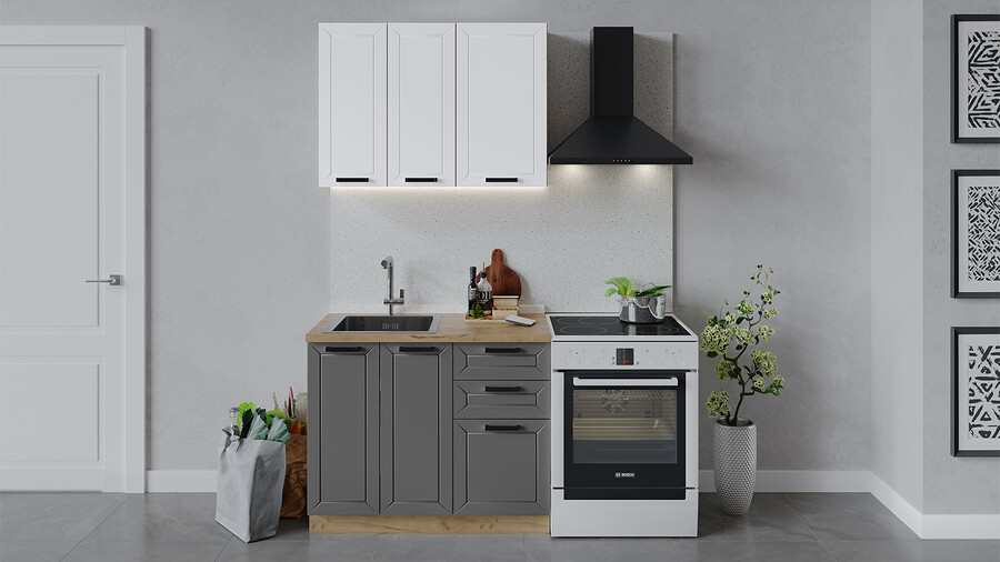 Габаритный размер готового набора модулей с учетом газовой плиты на 60 см: 160 см.