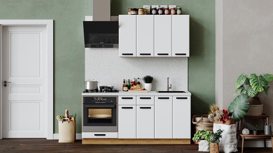 Габаритный размер готового набора модулей с учетом газовой плиты на 60 см: 180 см.