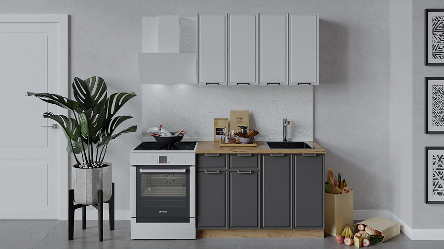 Габаритный размер готового набора модулей с учетом газовой плиты на 60 см: 180 см.