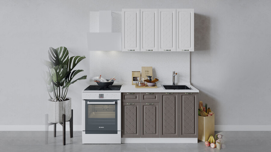 В стоимость не включено: Стеновая панель, столешница, доводчики, бытовая техника, мойка, смеситель, аксессуары