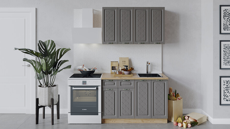 Габаритный размер готового набора модулей с учетом газовой плиты на 60 см: 180 см.
