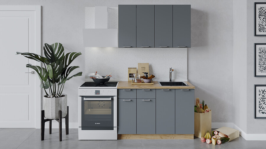 Габаритный размер готового набора модулей с учетом газовой плиты на 60 см: 180 см.