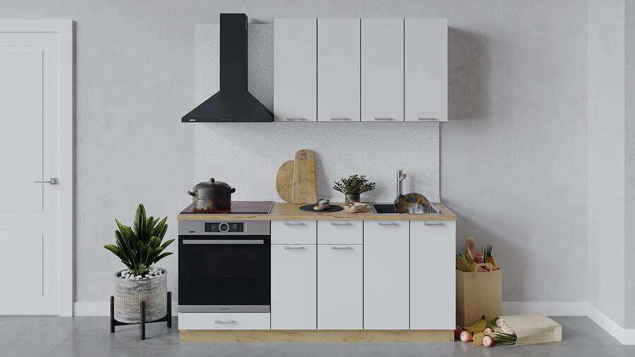 Кухонный гарнитур «Габриэлла» длиной 180 см со шкафом НБ Дуб Крафт золотой, Сноу