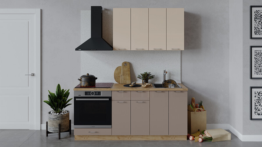 Кухонный гарнитур «Весна» длиной 180 см со шкафом НБ Дуб Крафт золотой, Ваниль глянец, Кофе с молоком