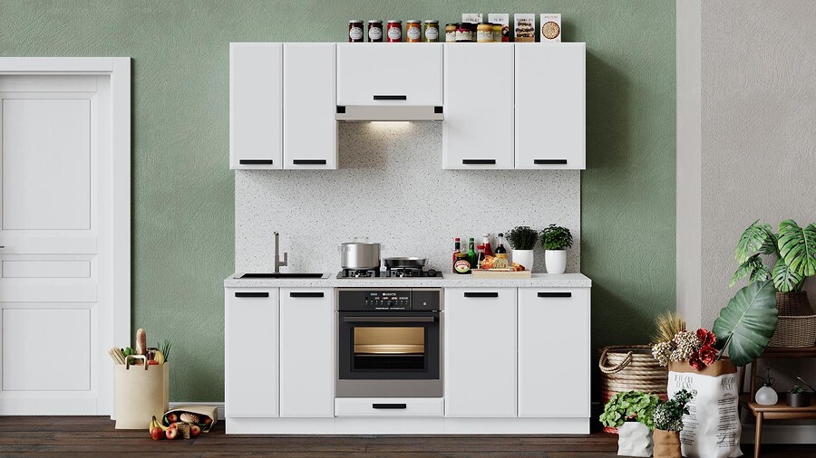 Габаритный размер готового набора модулей с учетом газовой плиты на 60 см: 200 см.