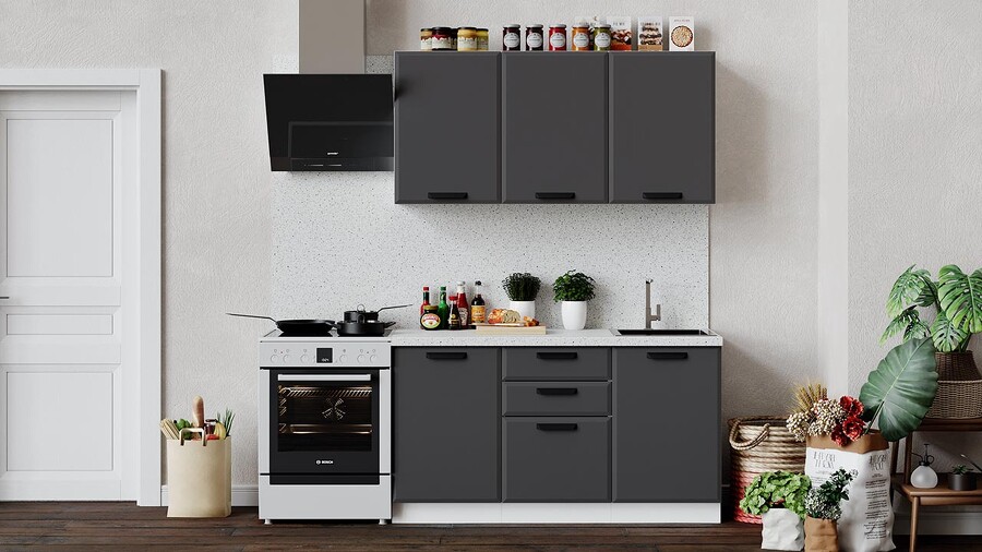 Кухонный гарнитур «Тиана» длиной 150 см Белый, Асфальт супермат