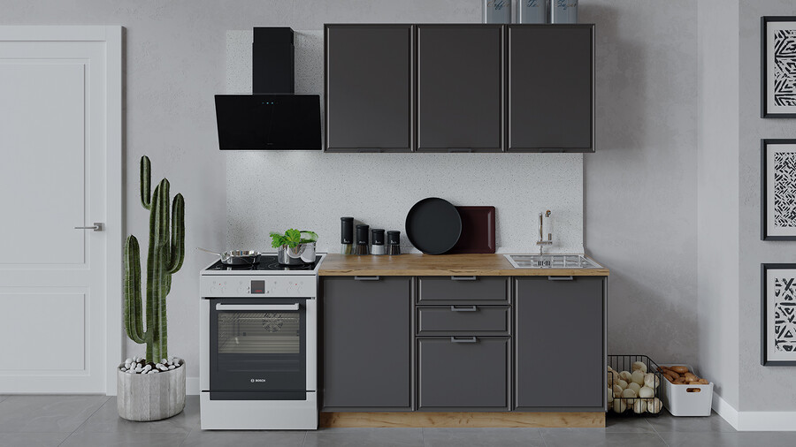 Габаритный размер готового набора модулей с учетом газовой плиты на 60 см: 210 см.