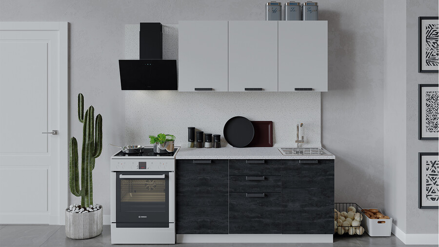 Кухонный гарнитур «Детройт» длиной 150 см Белый, Белый глянец, Угольный Камень