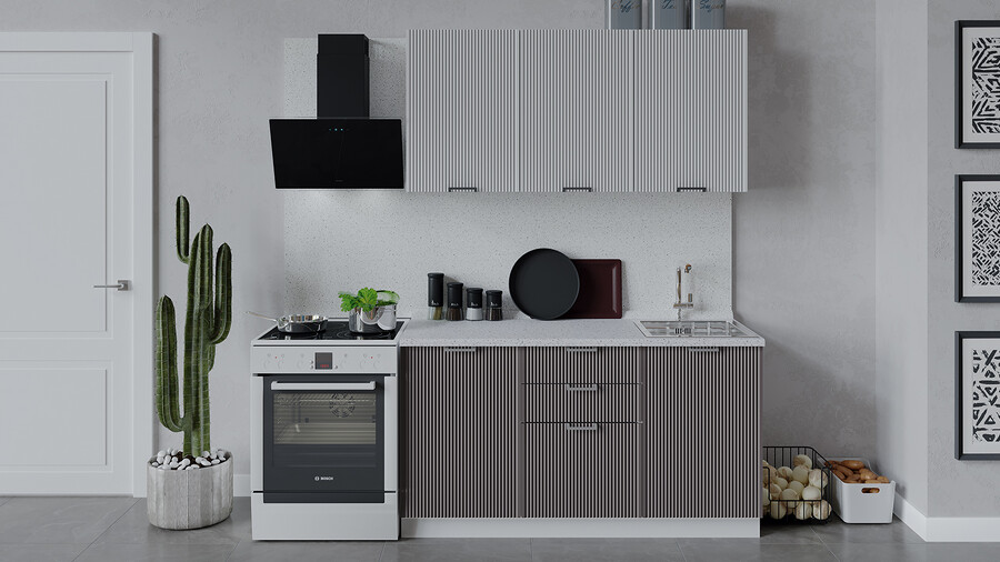 Габаритный размер готового набора модулей с учетом газовой плиты на 60 см: 210 см.